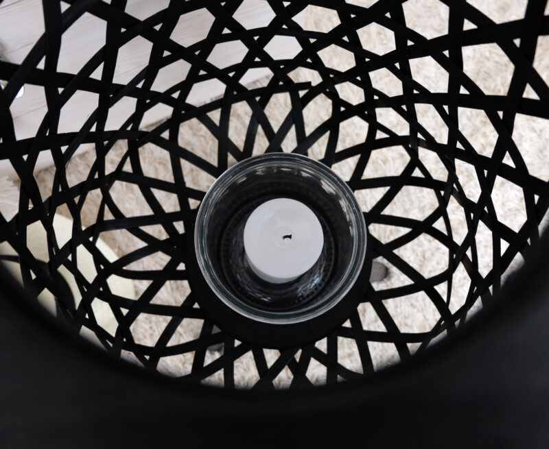 Musta kolmijalkainen kynttilälyhtyMusta kolmijalkainen kynttilälyhty