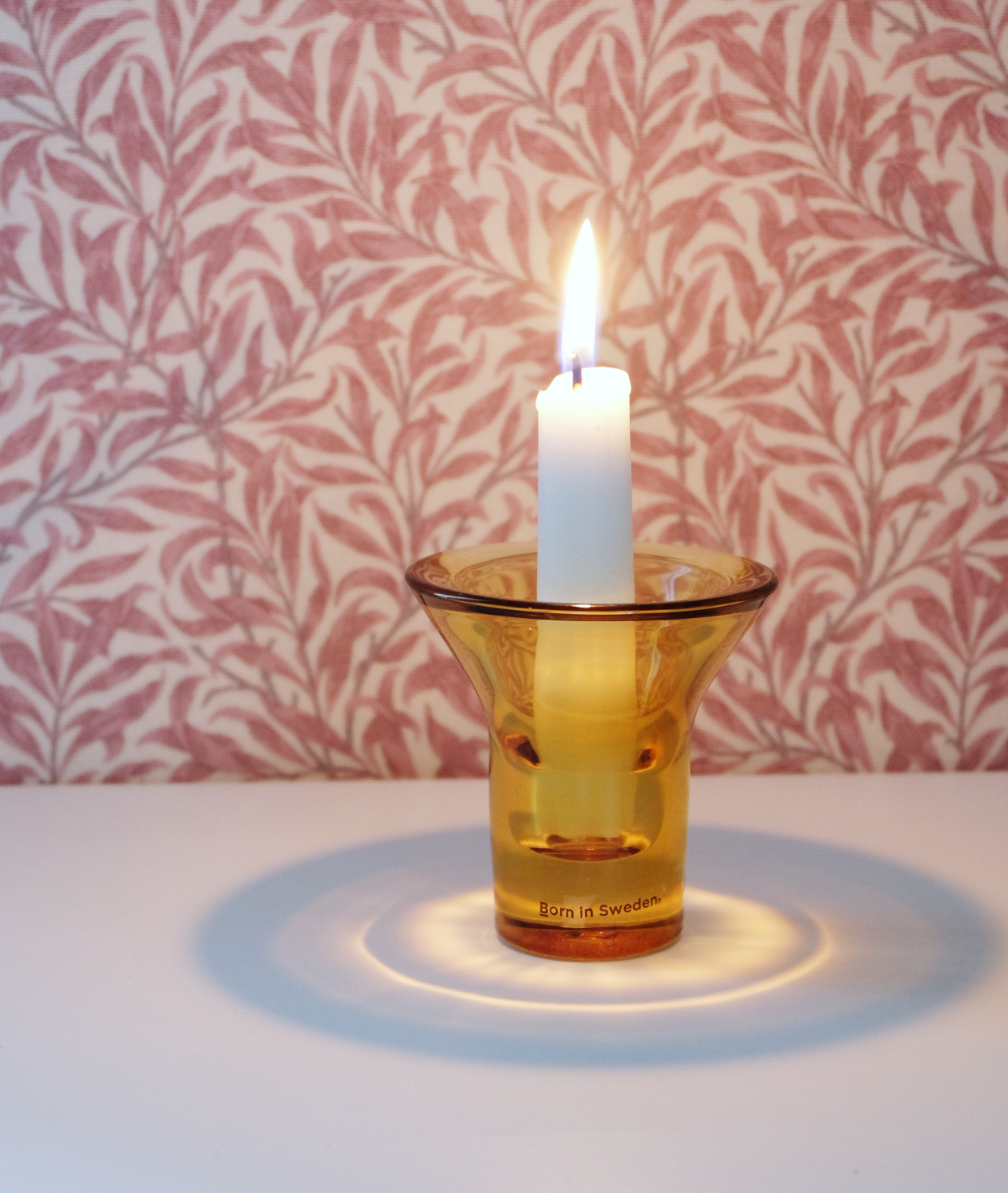 Laadukkaasta lasista valmistettu meripihkanvärinen kynttilänjalka antiikki- ja kruunukynttilälle. Täydellinen lahjaidea!