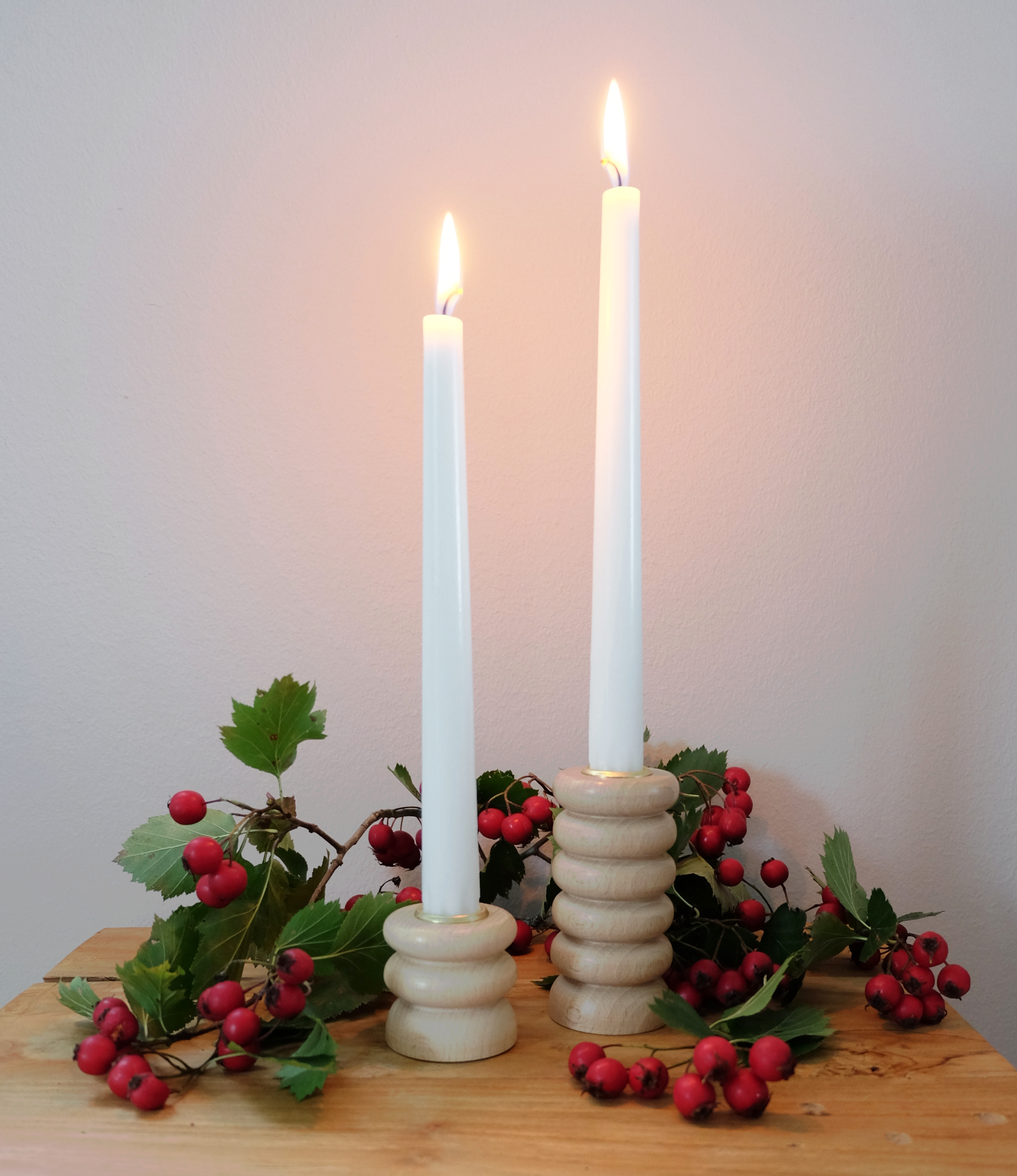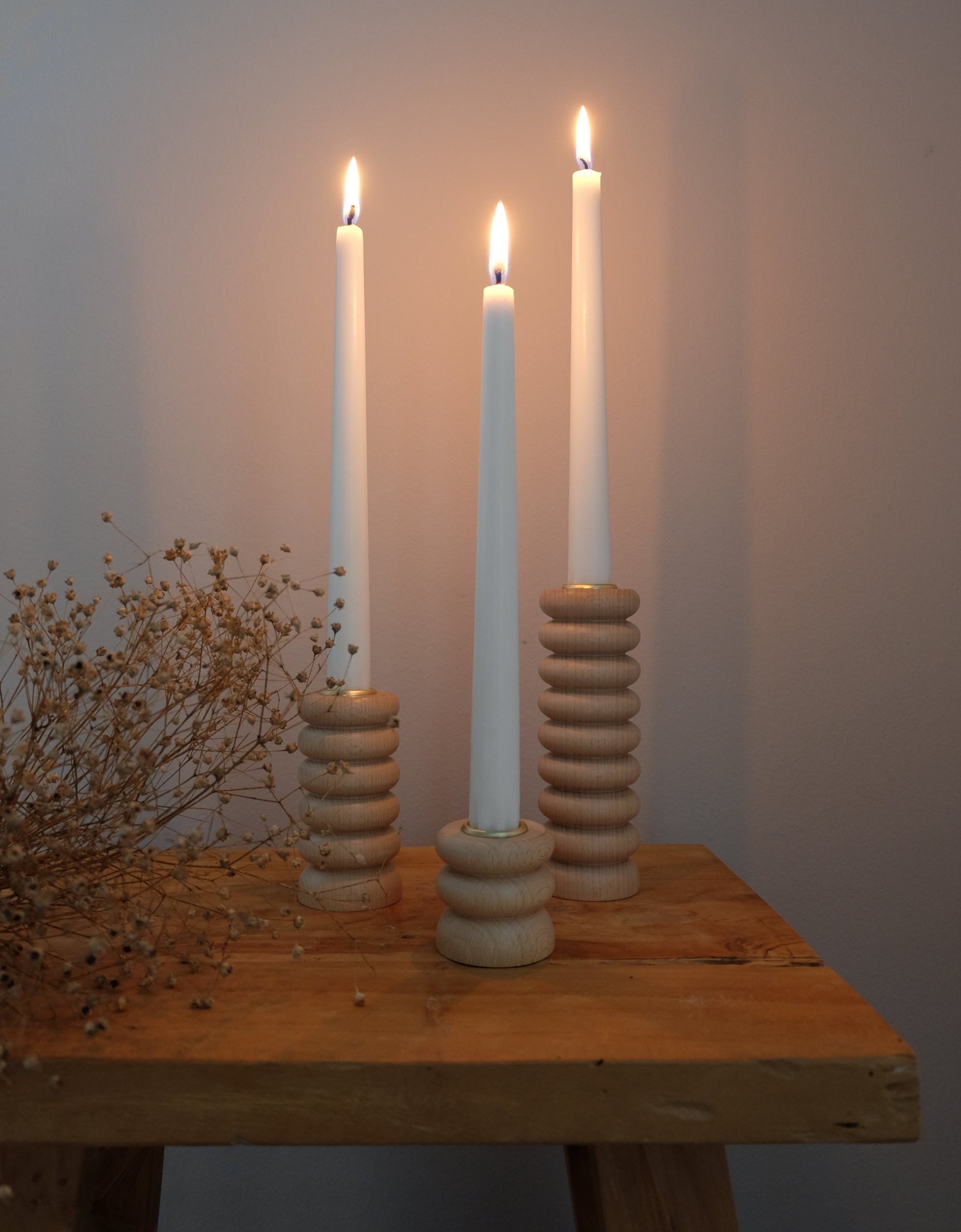 Puinen matala kynttilänjalka, joka on käsintehty sorvaamalla Portugalissa. Tämä skandinaavistyylinen kynttilänjalka on valmistettu kestävästä pyökistä. Pinta on viimeistelty suojaavalla ekolakkakerroksella. Saatavilla kolmessa eri koossa.