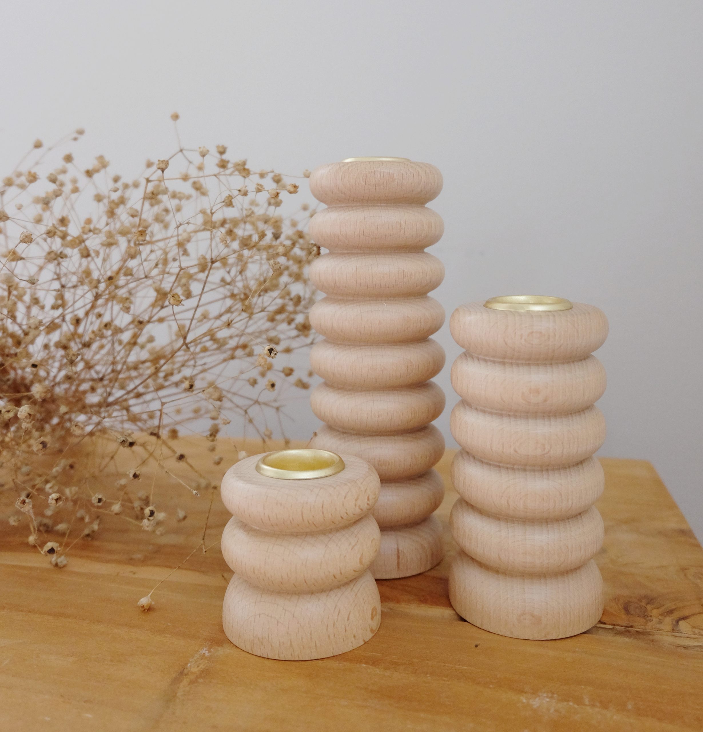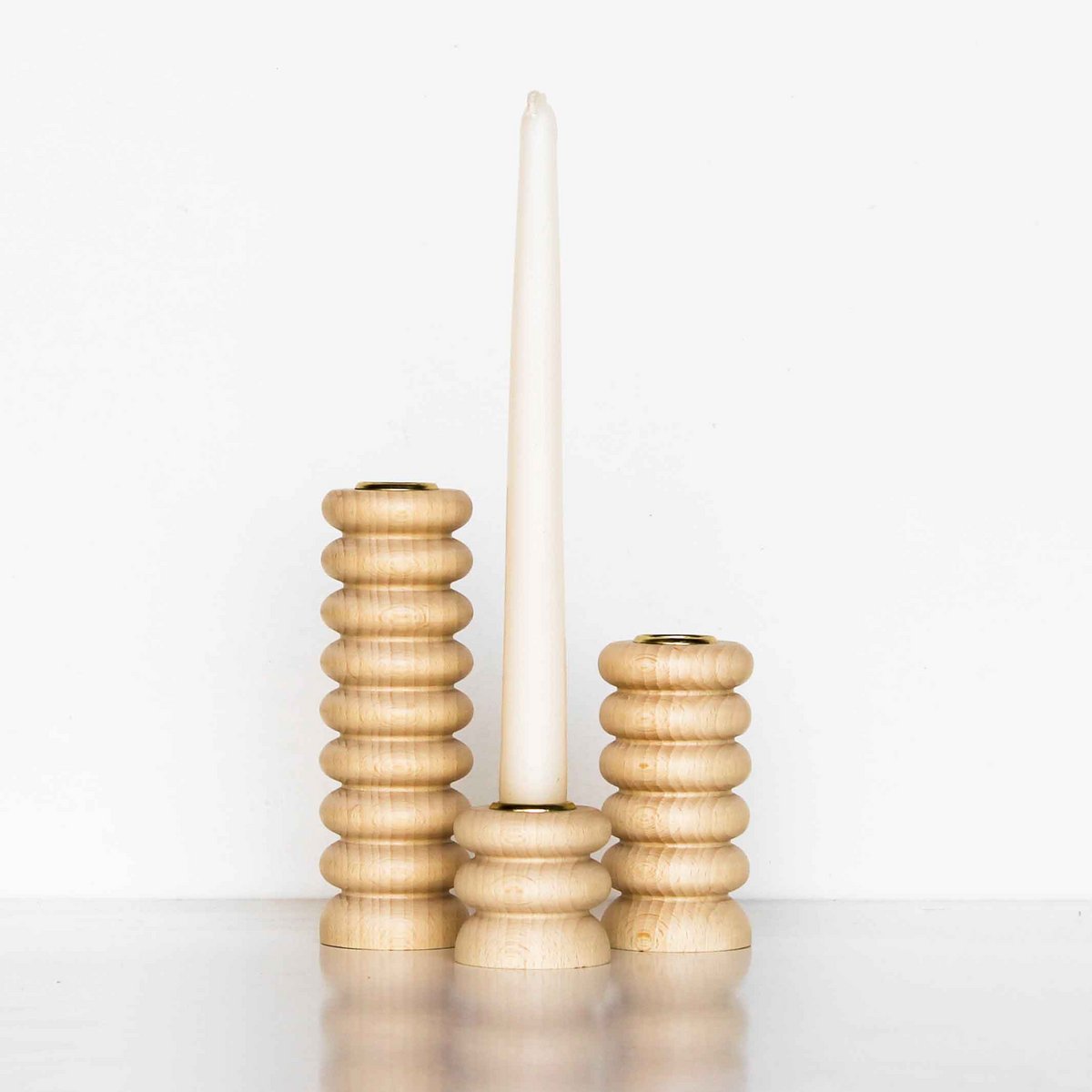 Moderni skandinaavinen matala puinen kynttilänjalka pyökkiäModerni skandinaavinen matala puinen kynttilänjalka pyökkiä