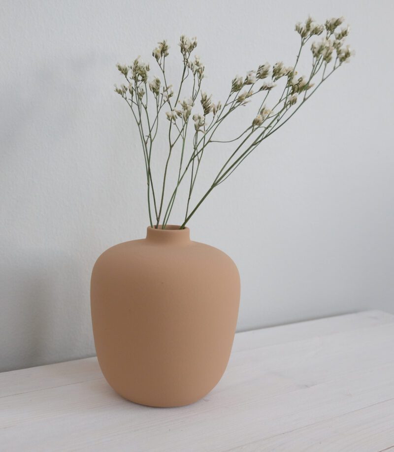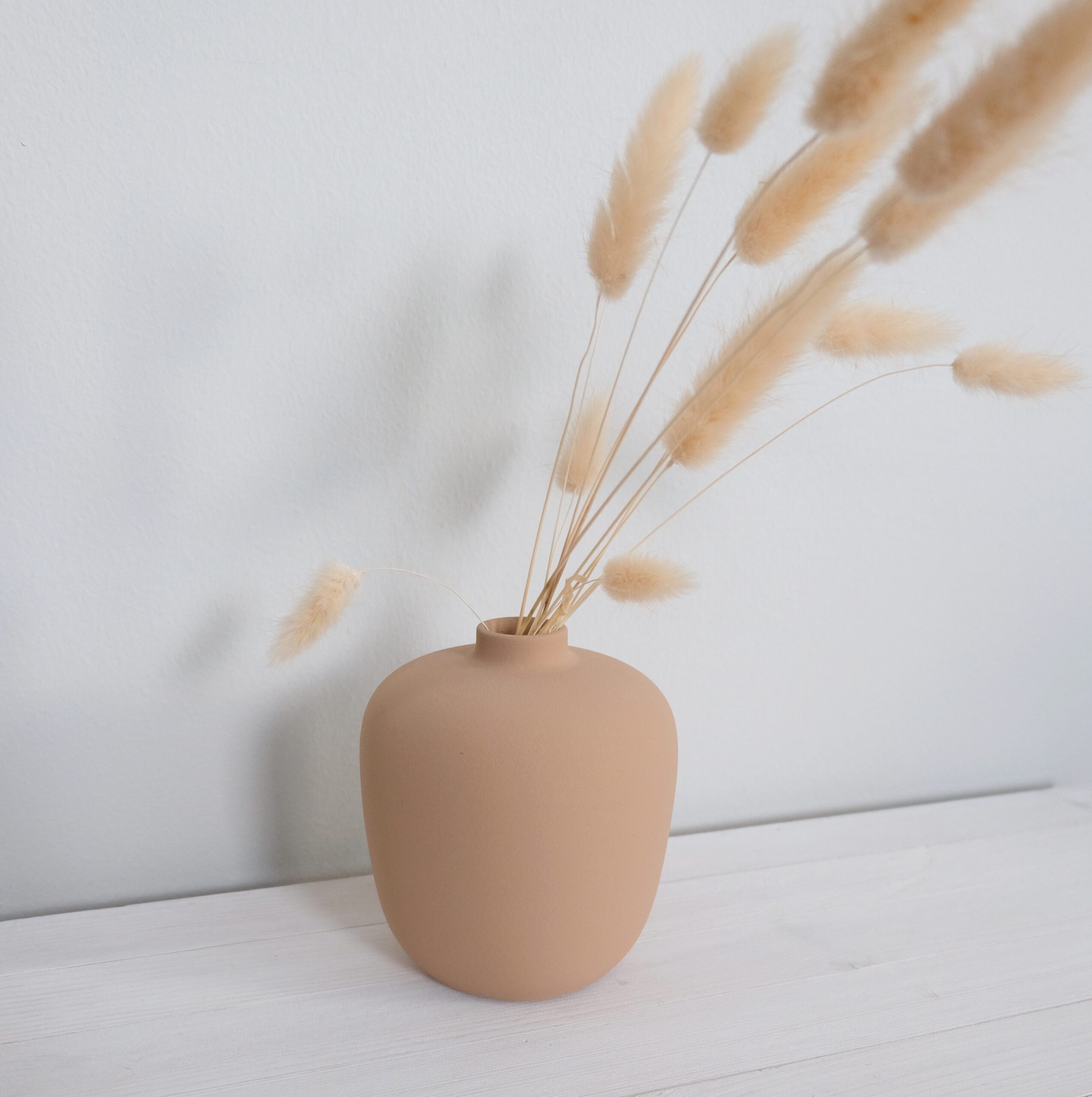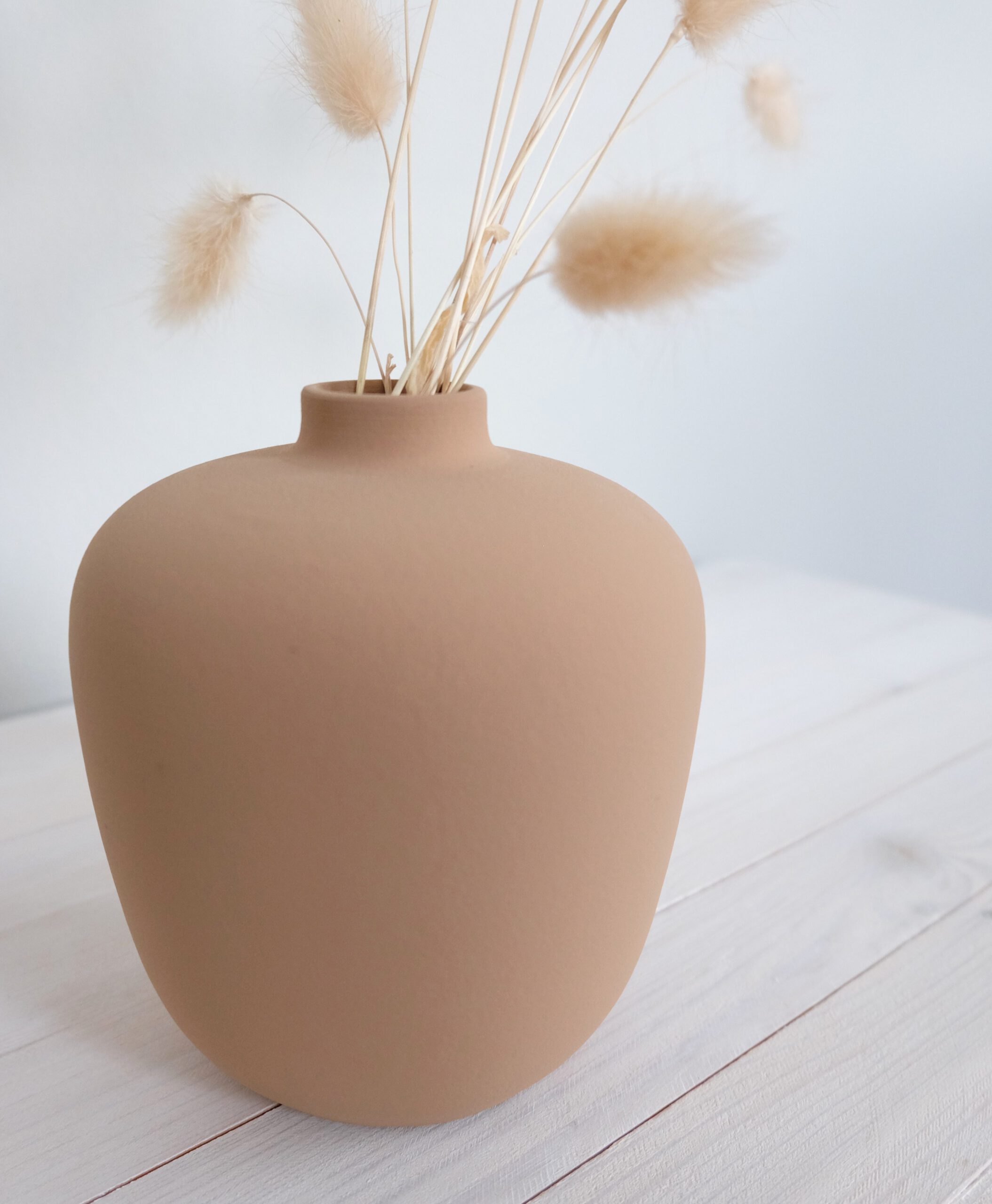 Maljakko on valmistettu käsin kestävästä keramiikasta ja jokainen kappale on oma yksilönsä. Ihastuttava maljakko sopii kuivatuille tai tuoreille kukille, mutta on kaunis yksistäänkin. Maljakko on vedenpitävä, mutta maljakossa oleva vesi saattaa muodostaa jälkiä maljakon mattapintaan.