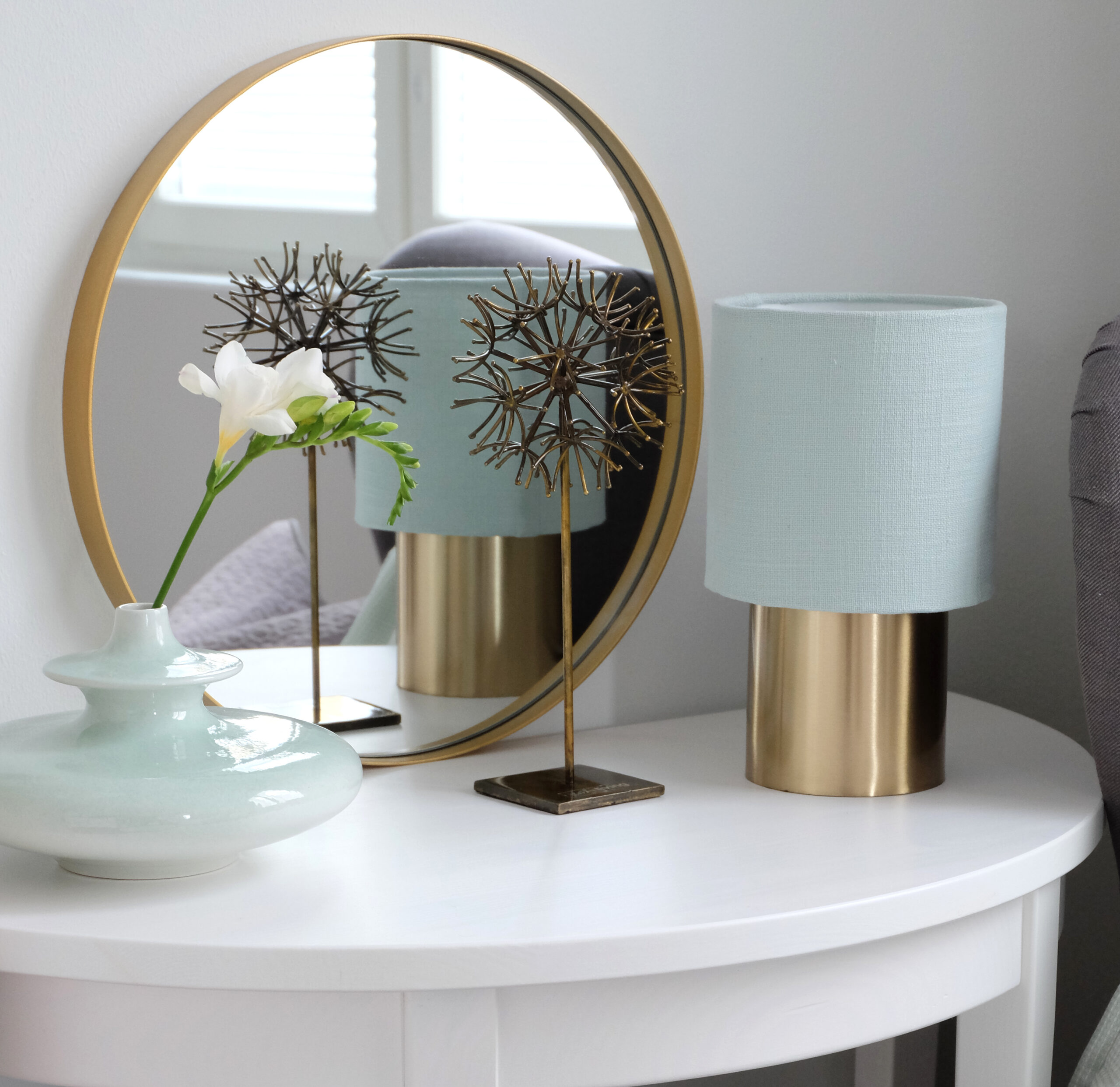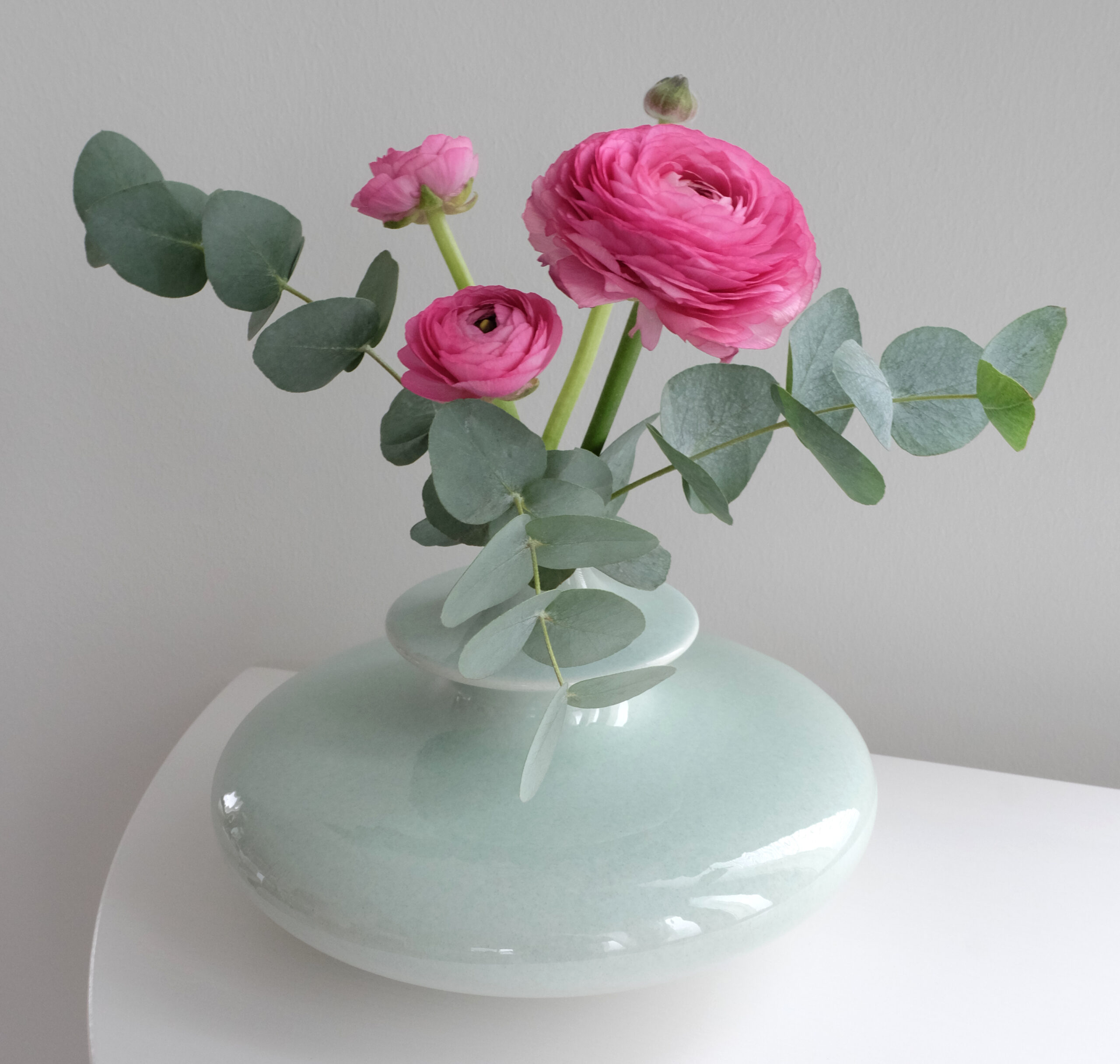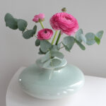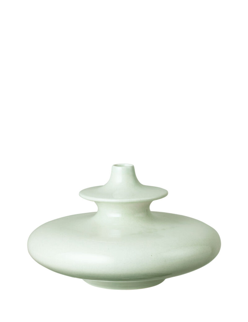 Upea vaaleanvihreä lasitettu Monja-maljakko näyttää kauniilta yksinään tai vain yhden hennon kukan kanssa.