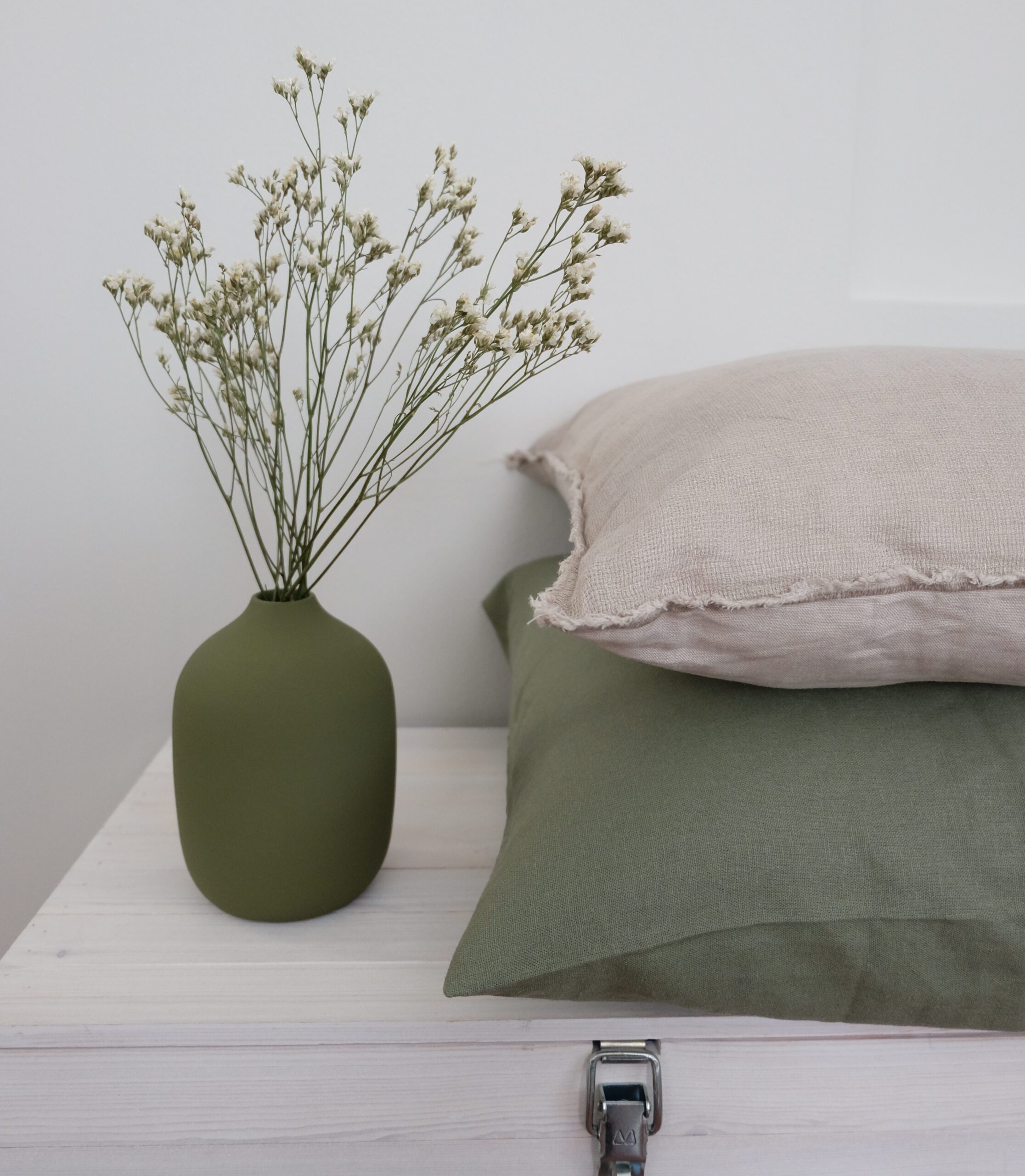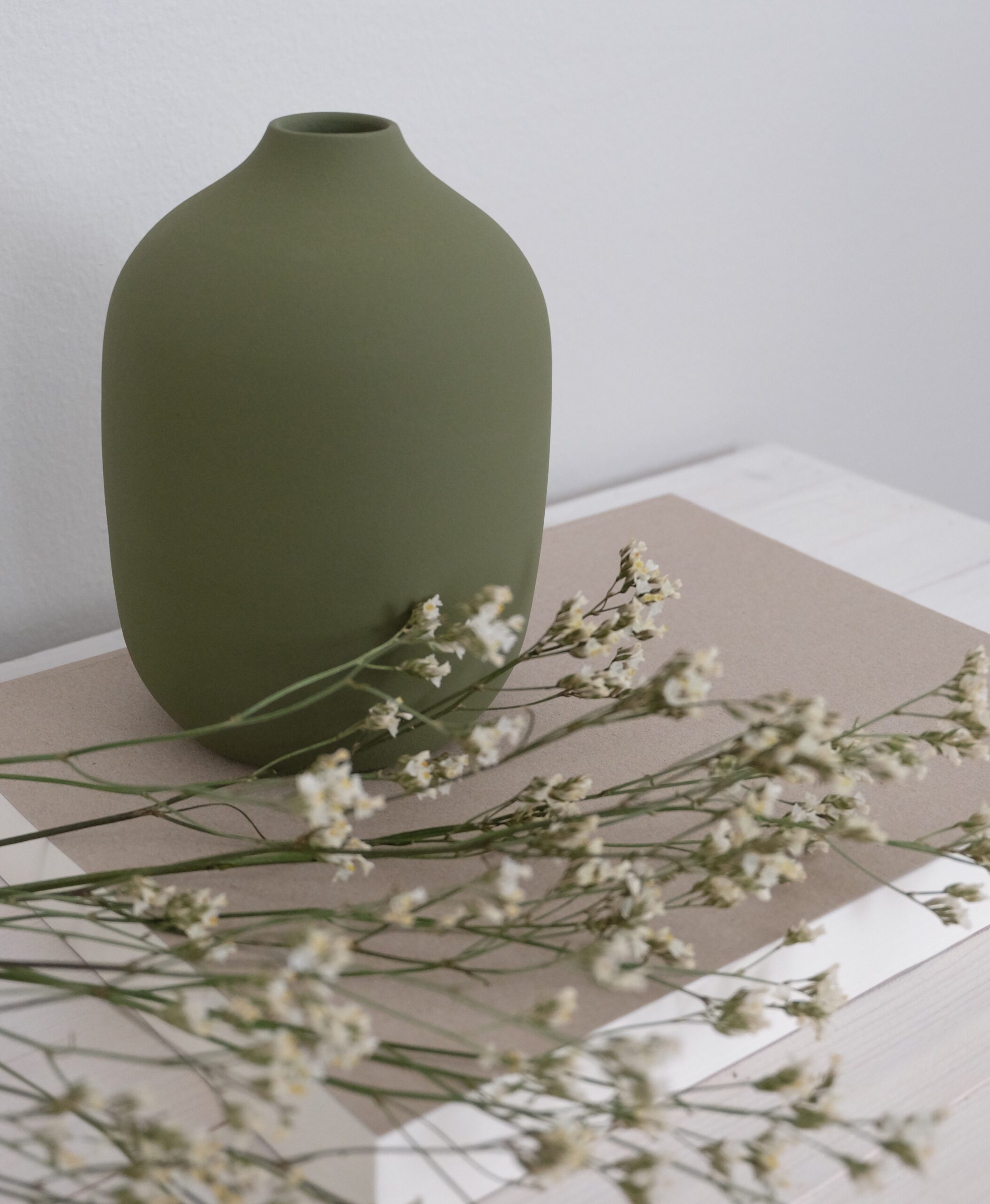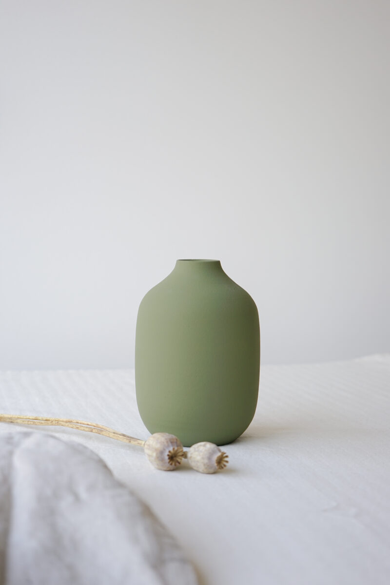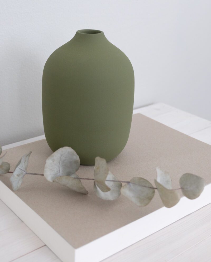Oliivinvihreä keraaminen maljakkoOliivinvihreä keraaminen maljakko