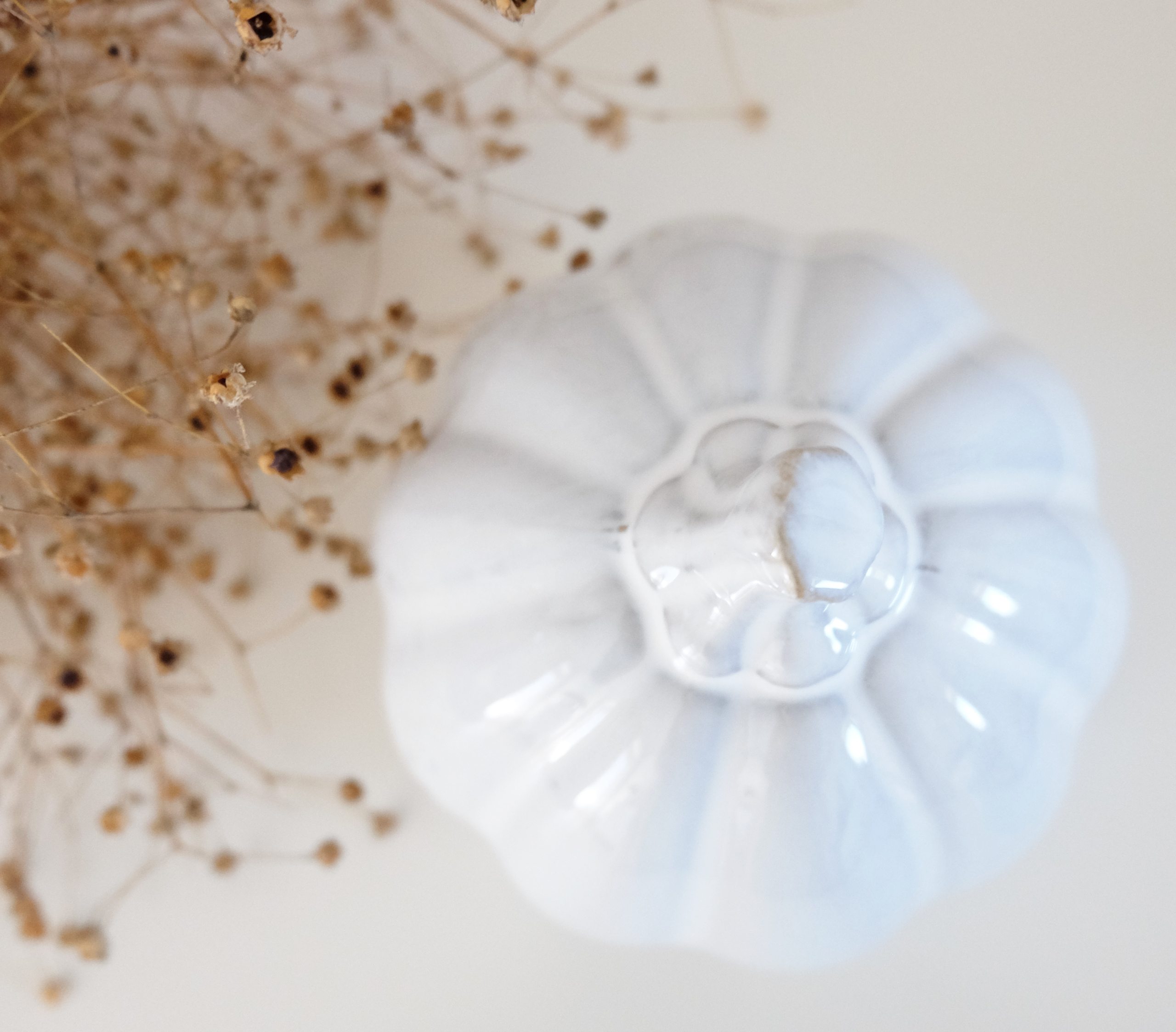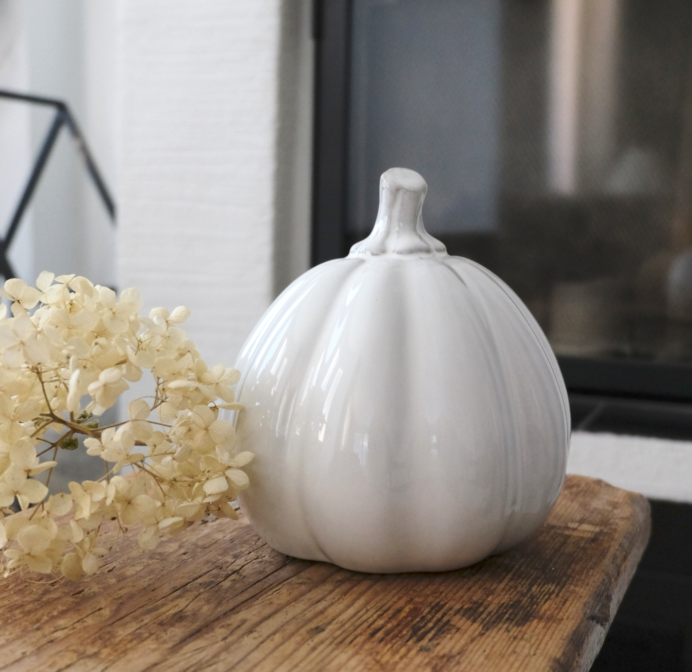 Kurpitsa pöytäkoriste valkoinen keramiikkaaKurpitsa pöytäkoriste valkoinen keramiikkaa