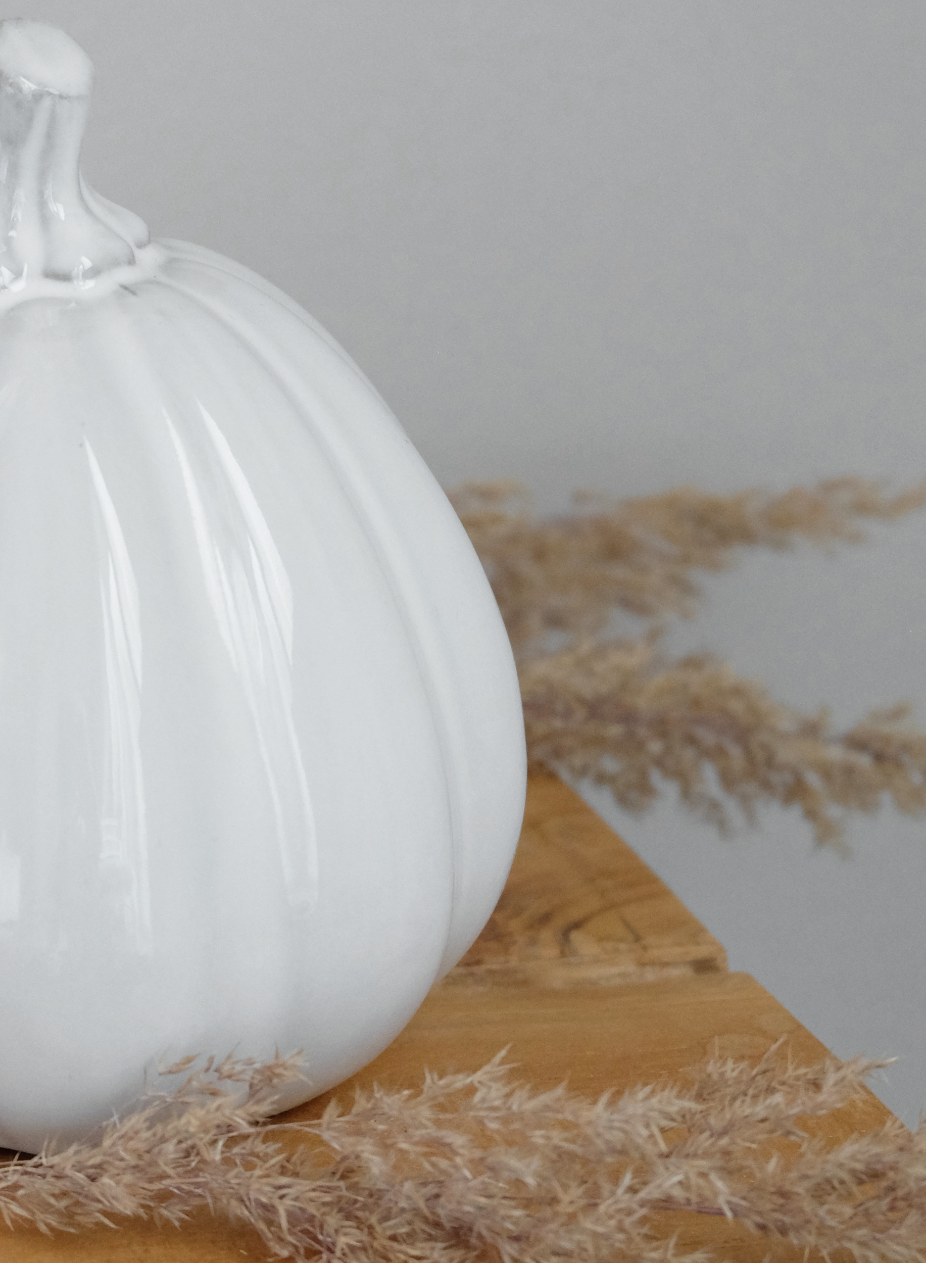 Kaunis valkoinen posliinista valmistettu kurpitsa sopii täydellisesti pöytäkoristeeksi mihin tahansa tilaan ja sisustukseen. Sileä lasitettu pinta antaa ylellisen ilmeen.
