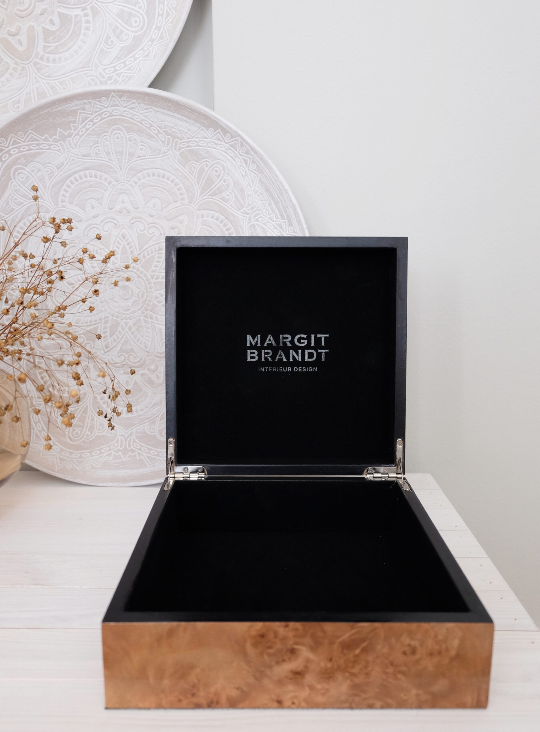 Viehättävässä säilytyslaatikossa on musta pehmeä samettisisus, jonka vuoksi se sopii erinomaisesti korujen säilytykseen.
