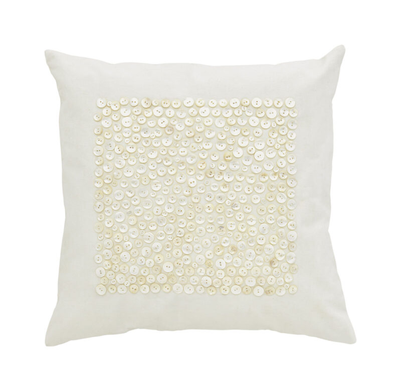 Piristä sohvaasi napein koristelulla sisustustyynyllä. Nappi-koristelu on tyynyn etupuolella, takapuoli on sileä. Kermanvaalea väri on helppo yhdistää kirjavien tyynyjen kanssa. Vetoketju sivusaumassa. Mukaan kuuluu Oeko-Tex sertifioitu untuvainen sisätyyny.