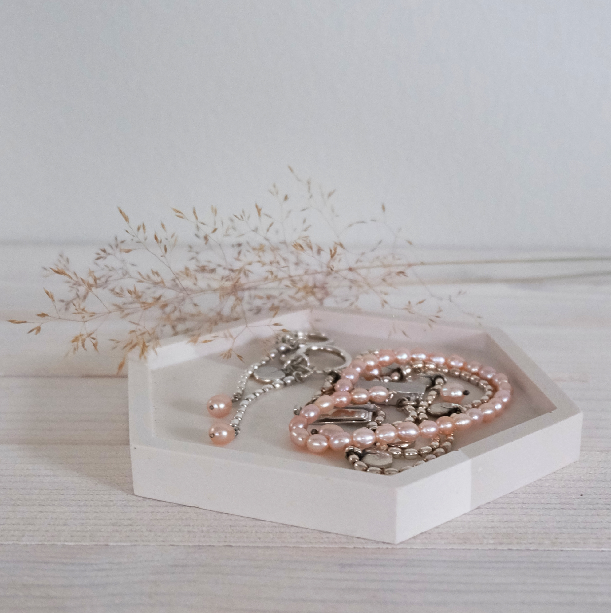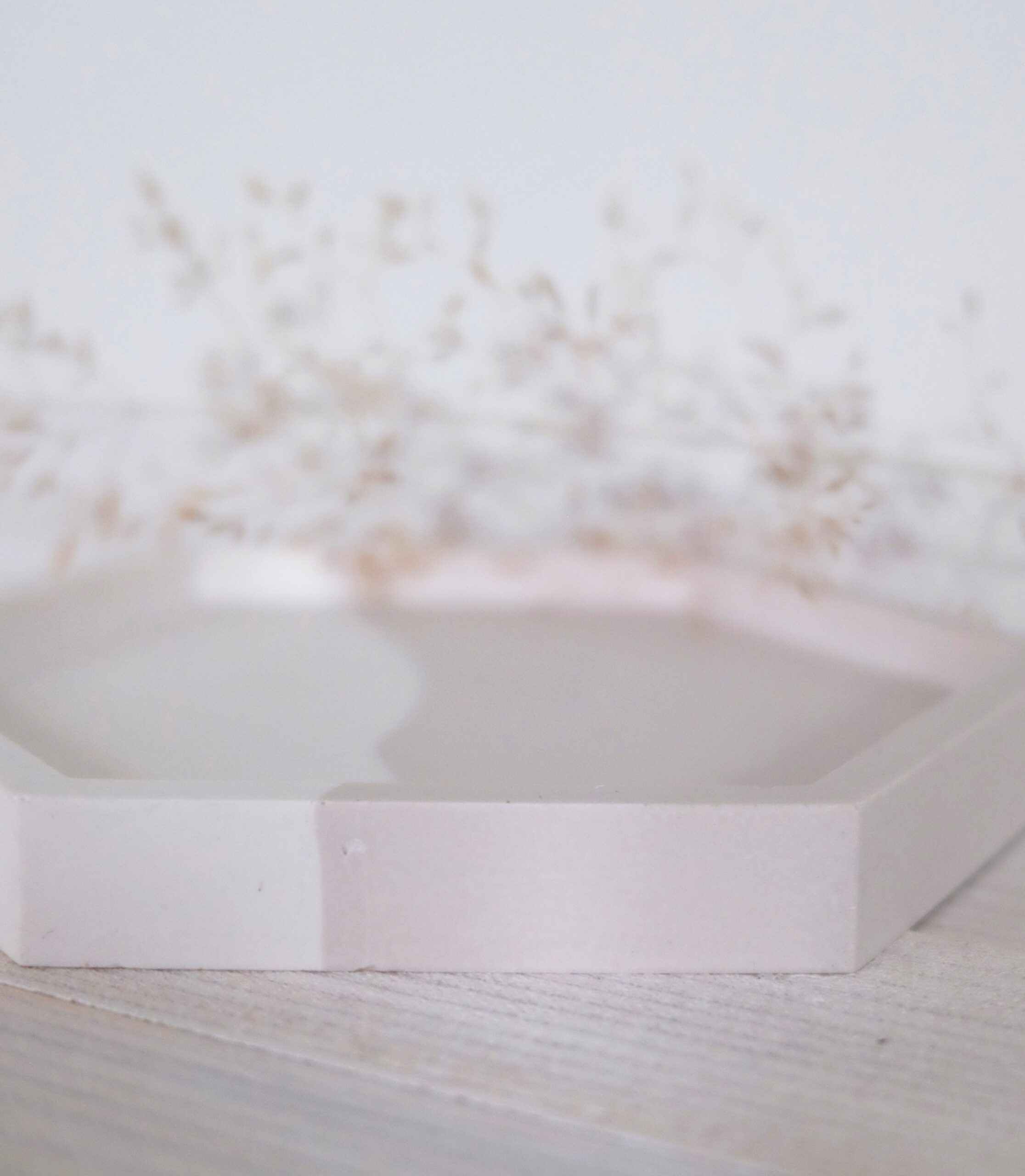 Pieni kuusikulmainen tarjotin on ihanteellinen säilytyspaikka irtotavaroille tai alustaksi kynttilälle. Tarjotin on valmistettu Alankomaissa vesipohjaisesta komposiittimateriaalista, joka on liuotinvapaa ja siksi ympäristöystävällinen ja turvallinen käyttää. Tarjotin on lämmönkestävä ja käsitelty mehiläisvahalla vettä hylkiväksi. Jokainen tuote valmistetaan yksilöllisesti käsin ja siksi tuotteiden väri sekä kuvio voivat poiketa hieman kuvista.