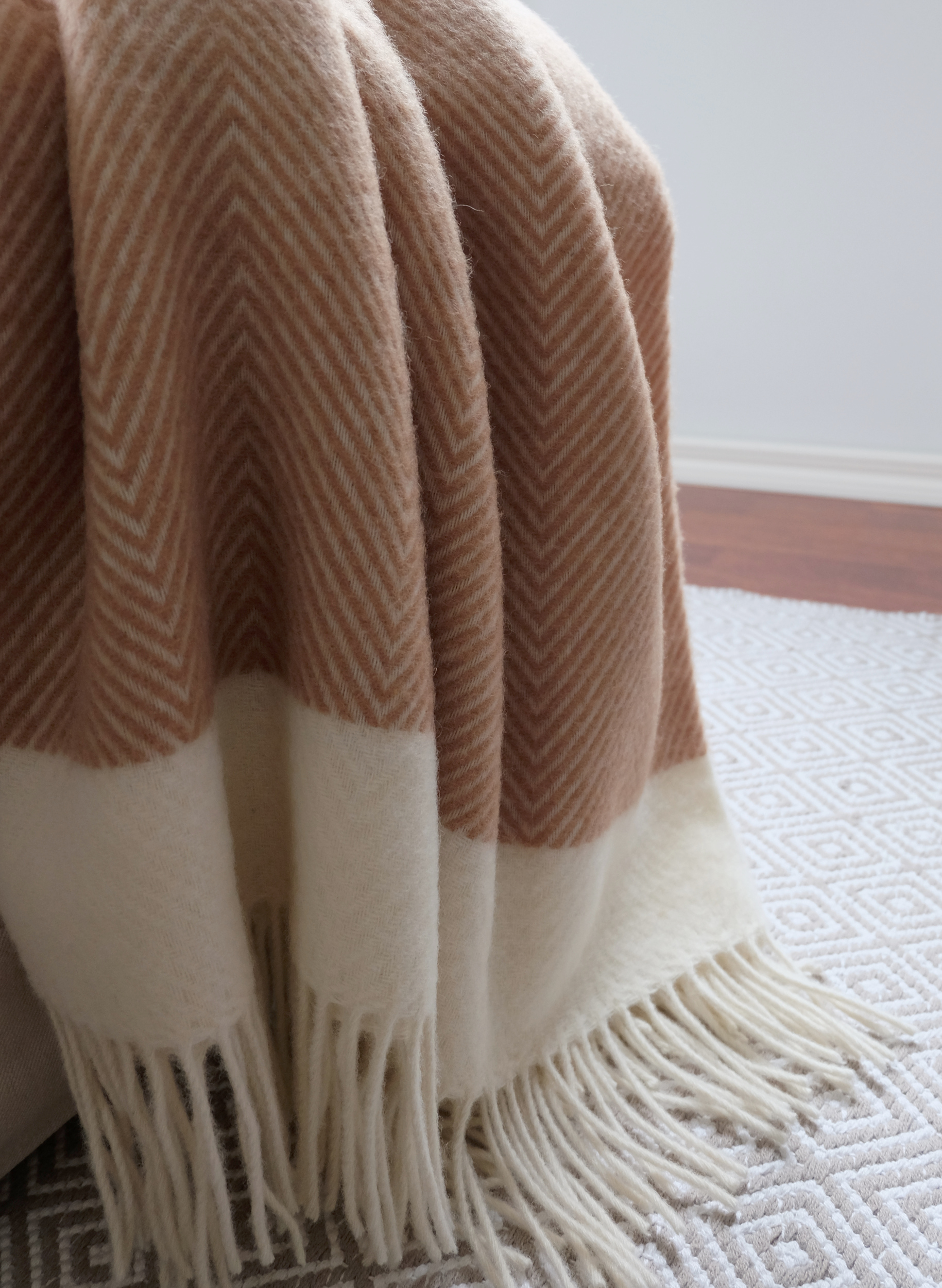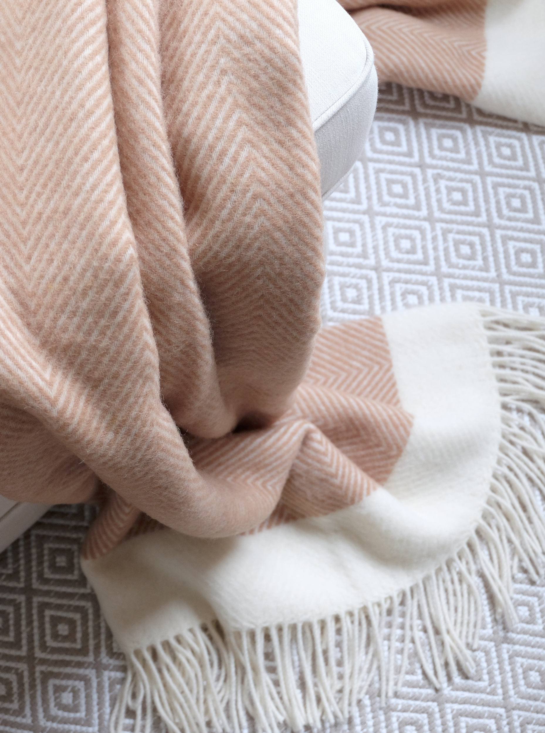 Villainen ihanuus – vaaleanruskea Florence-torkkupeitto – on valmistettu taidokkaasti Ukrainassa 100 % Uuden-Seelannin villasta. Kalanruotokuvio tuo lisäripauksen ajatonta eleganssia. Hienostunut vaaleanruskea värimaailma täydentää vaivattomasti erilaisia sisustustyylejä. Kääri itsesi torkkupeiton lohdulliseen syleilyyn kylminä iltoina tai levitä se kauniisti esille muuttamaan kotisi ilmettä.