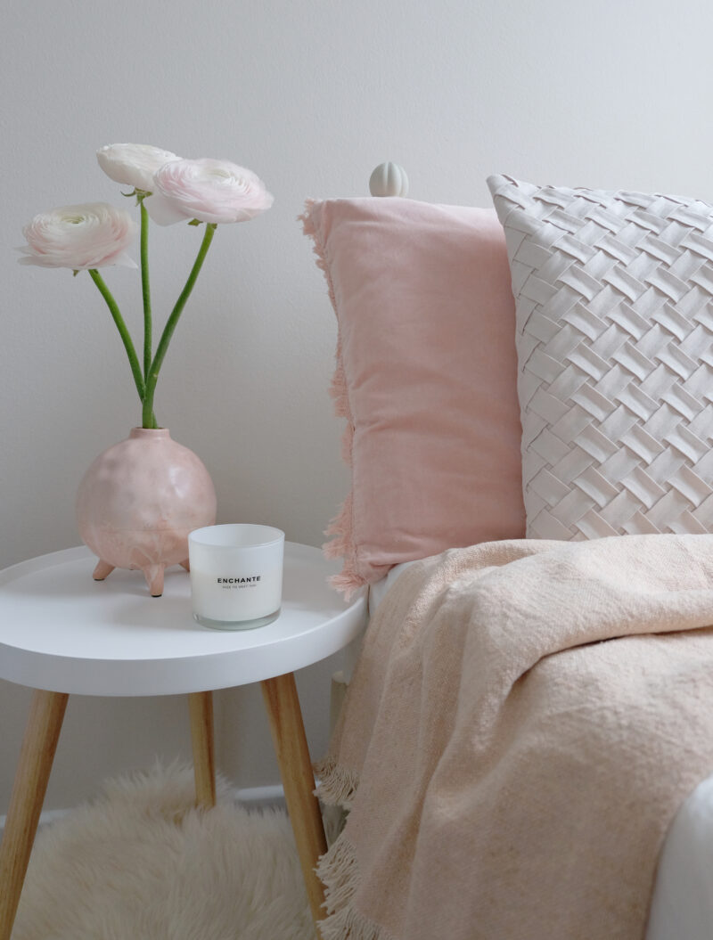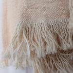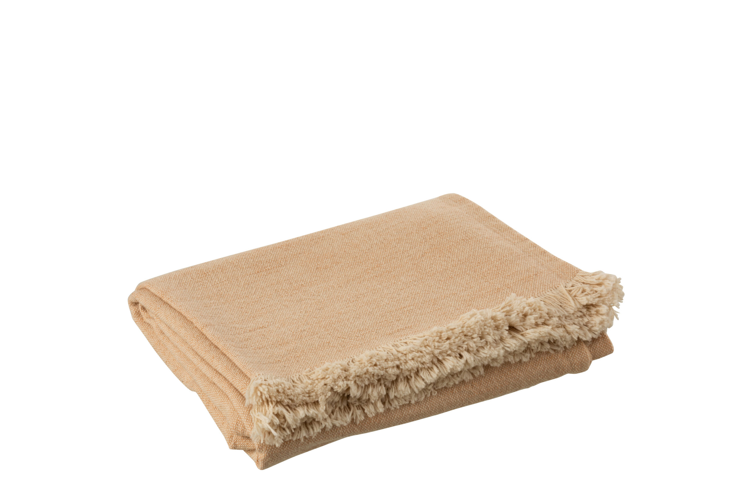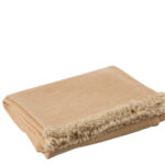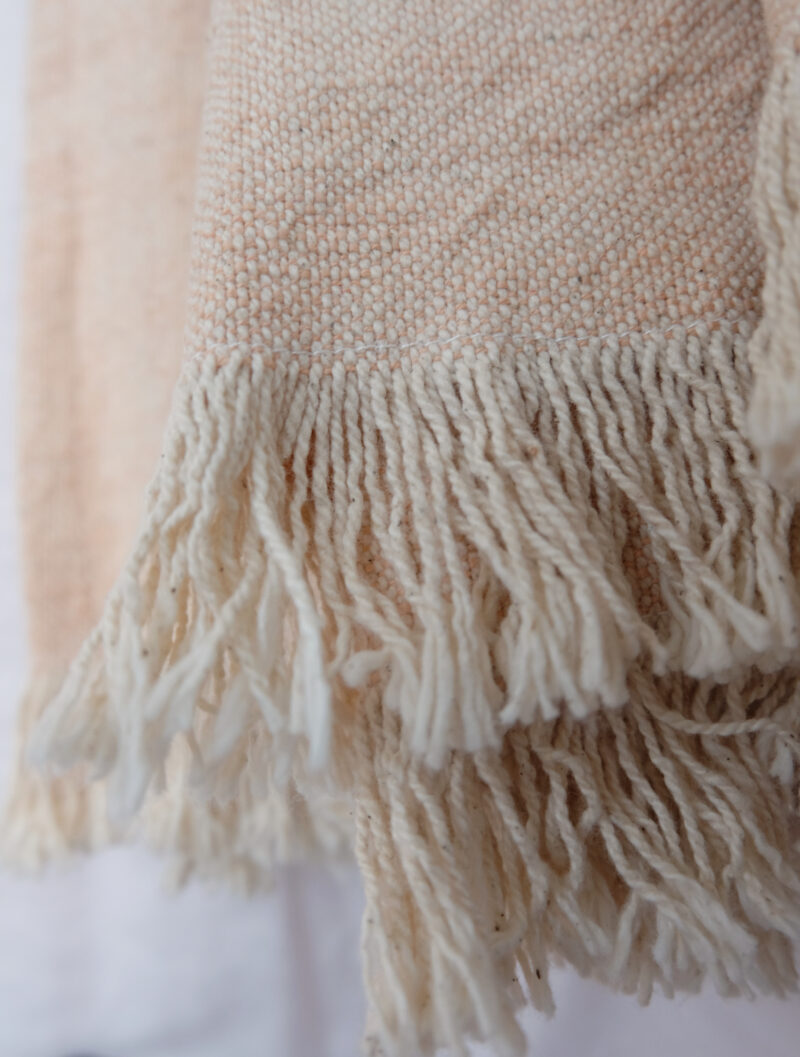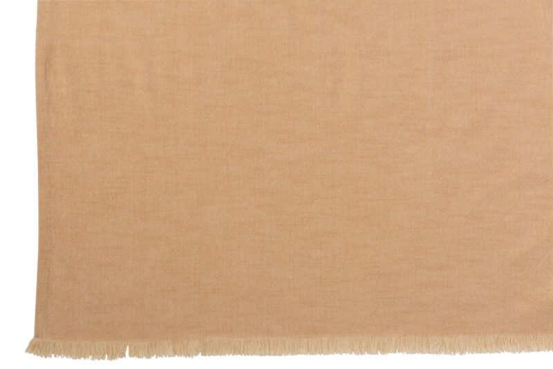 Torkkupeitto Orange on paksua puuvillaa. Torkkupeiton päissä on hapsut.