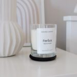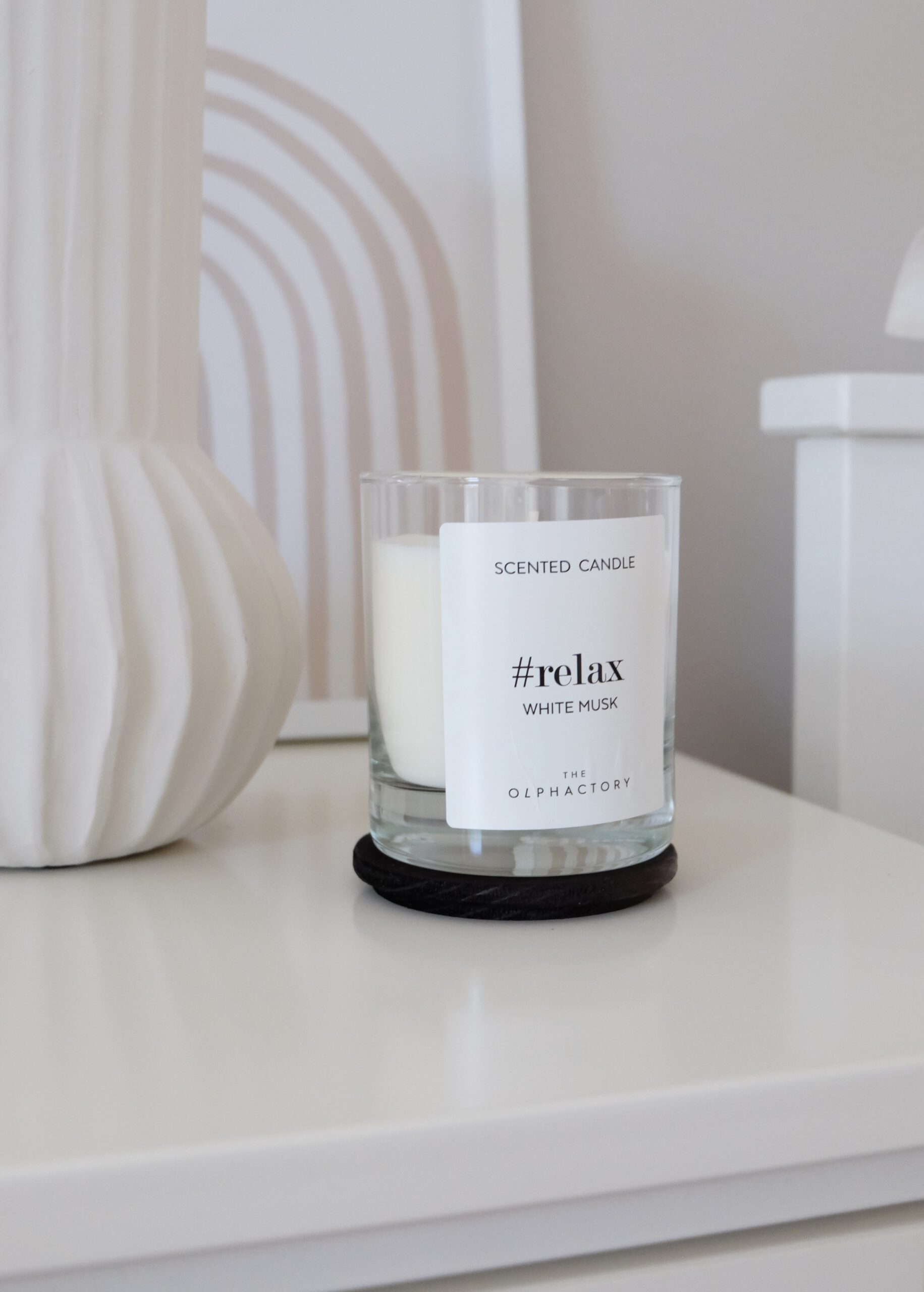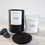 Tämä kasvivahasta valmistettu musta kantinen tuoksukynttilä Relax täyttää kotisi eteeristen öljyjen tuoksuilla. Tuoksukynttilä on pakattu kauniiseen mustaan pahvipakkaukseen.