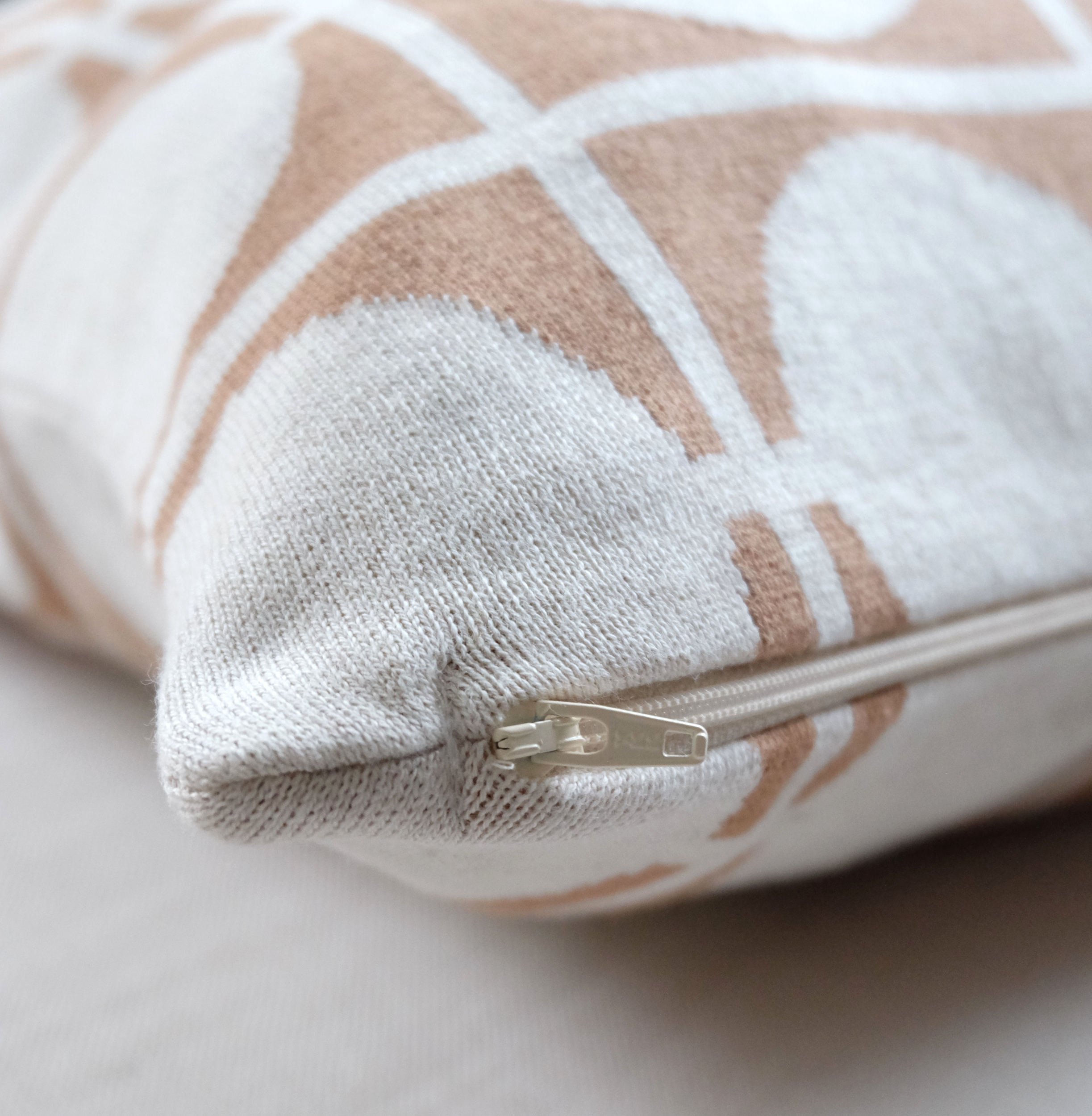 Jacquard-neulottu sisustustyynynpäällinen ihanan pehmeää harjattua puuvillaa. Graafisesti kuvioidussa päällisessä vetoketju on sivusaumassa. Sopiva sisätyyny on kooltaan 50 x 50 cm (ei kuulu mukaan). Hellävarainen pesu 30 asteessa.